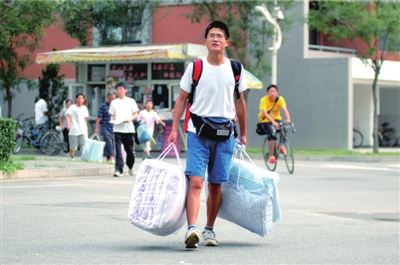 昨天下午,王佳明和同宿舍的同學忙著搬行李。他已經(jīng)接到學校通知,即將從培訓期間所住的1號樓搬到6號樓,這就是他未來4年的宿舍樓!皩W校已經(jīng)給我們發(fā)了被子等日用品,報到完畢后,我還要和老師一起負責接待新同學!