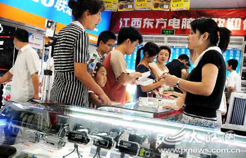 電腦、手機、MP3已經(jīng)成為目前一些家庭經(jīng)濟條件較好的大學生的“新三樣”,成為學生新學期的新裝備。某商場的一名導購員告訴記者,開學前的這段時間是數(shù)碼產(chǎn)品的銷售旺季,各商家均紛紛采取各種促銷手段來吸引學生群體。正在南昌市一電子數(shù)碼城購買MP3的大一學生小王告訴記者,考上大學時父母就答應給她買手機和MP3,今天和媽媽一起出來挑選。