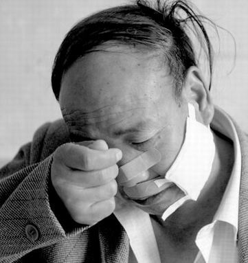 昨日下午,在藍田縣中醫(yī)醫(yī)院,王定安正躺在病床上打吊針,臉上包著紗布,醫(yī)生說,他只是外傷,情況不是很嚴重。