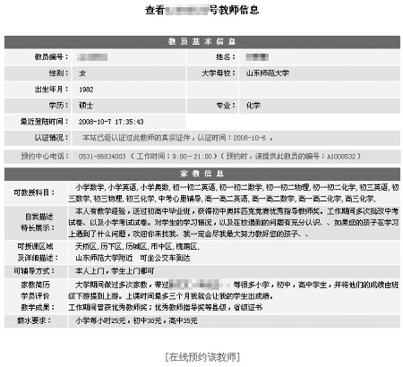 記者登錄了幾個(gè)家教網(wǎng)站,發(fā)現(xiàn)許多家長(zhǎng)在網(wǎng)站發(fā)布的家教信息中,在“對(duì)老師要求”一欄中都填寫(xiě)了“在職教師”,而許多提供家教的老師在自己發(fā)布的信息中,也明確寫(xiě)明了“大學(xué)生”或“在職教師”,許多在職教師留下了自己的聯(lián)系電話。
