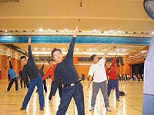 馬步弓身、大鵬展翅、輕邁舞步……如果你認為這是舞蹈比賽或功夫表演,那你就錯了,這是北京中小學體育老師練習新廣播體操的現(xiàn)場。昨天(12日),西城區(qū)400余名中小學體育老師在北京八中參加了第三套廣播體操的集中培訓。據(jù)了解,對于西城、海淀等“動手”較早的區(qū)縣,中小學生下月將可“嘗鮮”做起新廣播體操。