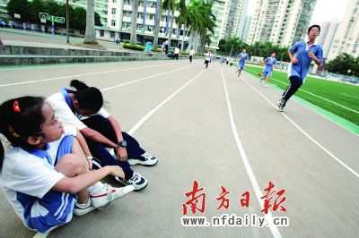 龍崗區(qū)平崗中學(xué)從9月底起就已經(jīng)開跑。該校體育老師鄒老師說,由于學(xué)校都是寄宿生,每天安排早操進行長跑,課間則長跑和廣播操穿插進行。高中學(xué)生要求跑2000米,但目前學(xué)校300米的環(huán)形跑道只要求學(xué)生跑兩至三圈,“必須有個循序漸進的過程,否則很難開展!