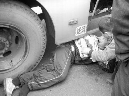 當日中午12時17分左右,記者趕到現(xiàn)場時,看到一輛106路公交車和一輛車號為甘A•C0883的微貨車正停在路中,旁邊圍了很多人。一名十三四歲的男孩躺在106路公交車旁邊,頭部及衣服上全是血?赡苁怯捎趧×业奶弁,孩子在不停掙扎,微貨車司機和幾位市民正在安慰受傷的孩子,讓他不要動。