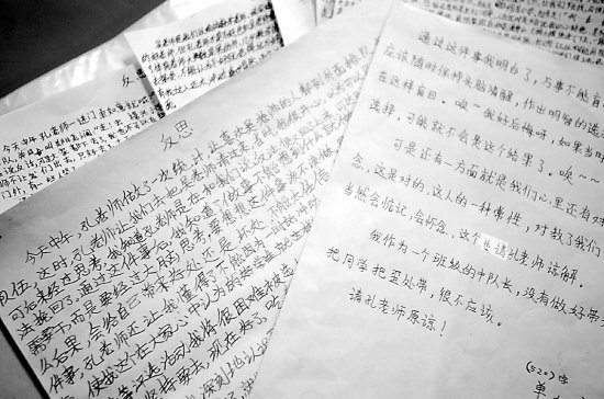 小學(xué)生們上交的反思書。記者 徐彥/攝