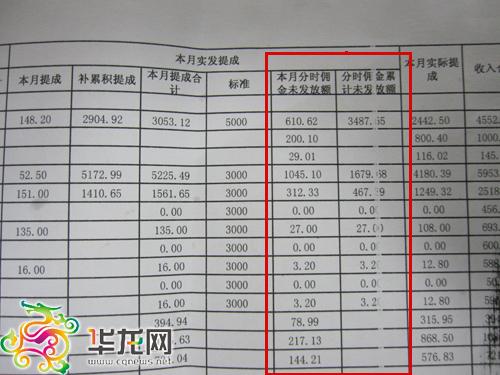 員工工資表上明確顯示的“分時(shí)傭金”扣除情況 王森 攝