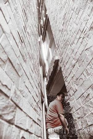 小區(qū)7棟與6棟之間有一個“V”字型的縫隙。經(jīng)記者測量,兩棟樓最寬間距3.4米,越朝里靠得越近,在房子未出現(xiàn)問題之前,最窄處有幾厘米的距離,而如今,卻是6棟的墻體壓在了7棟上,連塑鋼窗都打不開,抬頭往上看時,從1樓到6樓,兩棟樓緊緊地貼在了一起。