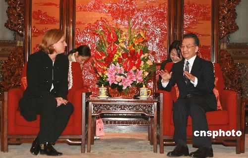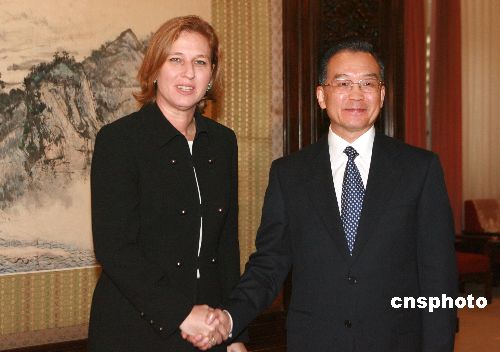 十月三十日,中國國務院總理溫家寶在北京中南海紫光閣會見以色列第一副總理兼外交部長齊皮·利夫尼。中新社發(fā) 廖文靜 攝