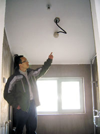 昨天,記者來到新怡家園6號(hào)樓10層李先生的新居。李先生說,這幢樓最高為11層,自己家的樓上是一間躍層,而自己家是平層,層高為2.8米?墒堑鹊津(yàn)收新房時(shí),他們竟然發(fā)現(xiàn)位于北側(cè)的廚房和臥室的屋頂變成了斜斜的坡頂。記者看到,南側(cè)的房屋屋頂都為平的,只是到了廚房和北側(cè)的臥室屋頂突然變成坡頂。而本來就不大的廚房因?yàn)閮A斜的坡頂顯得更加狹小,靠近窗子處的屋頂距地面的距離僅有1.7米左右,伸手即可觸摸到屋頂。“他們這樣做就是變更了設(shè)計(jì)。”