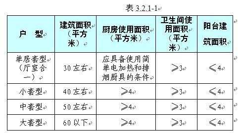 2.2.1 公共租賃住房戶型設(shè)計面積標(biāo)準(zhǔn)如下表3.2.1-1