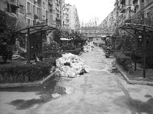 “現(xiàn)在最大的問(wèn)題是保潔和保安。”小區(qū)業(yè)主委員會(huì)負(fù)責(zé)人傅先生說(shuō),寧工新寓是一個(gè)有著1000戶居民的大小區(qū),由于物管突然撤離,大量生活垃圾無(wú)人清掃清運(yùn),只得堆在樓前、綠地的空曠處,十多天下來(lái),小區(qū)已是臟亂一片,“再這樣下去,肯定臭翻天!”