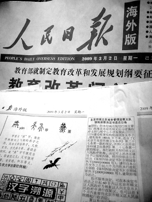 《人民日報》海外版廣告部的工作人員告訴記者,海外版面向全世界80多個國家發(fā)行,城管部門刊登《強(qiáng)制拆除決定書送達(dá)公告》是第一次。(記者 王彬)