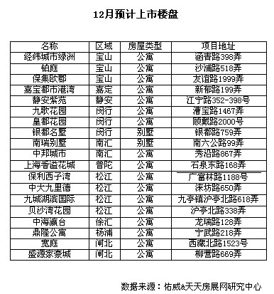 12月份閔行松江寶山成熱點區(qū)域