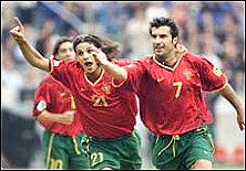 雖然自從1966年以來,葡萄牙隊僅僅3次打進過世界杯決賽圈,而上一次是在1986年,雖然他們在世界杯歷史上最好戰(zhàn)績也僅是1966年的第三名,但這這個國家卻從來不缺少天才球星。葡萄牙歷史上最成功球星"黑豹"尤西比奧,不知在他的那個時代令多少足球?qū)I(yè)人士所折腰,F(xiàn)在,那批在1989年和1991年連續(xù)兩年取得世界青年足球錦標賽冠軍,被稱為"黃金一代"的球星們也已經(jīng)成長起來。費戈剛剛當選世界足球先生,而他的同胞魯伊-科斯塔也在意大利賽場書寫著自己的輝煌。