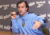 不過,這似乎并不影響他的執(zhí)教能力。正是在他的帶領下,阿根廷近年來向世人呈現(xiàn)了一場場精彩的攻勢足球。可以說,他瘋狂的3-3-3-1攻擊陣容,已經(jīng)深入人心。對于2002年的世界杯目標,他的回答很簡單:不但要奪取世界杯,而且還要贏得好看。
