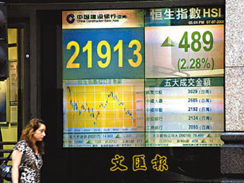 恒指7日升489點(diǎn),成交增至600億元。(圖片來(lái)源:文匯報(bào))