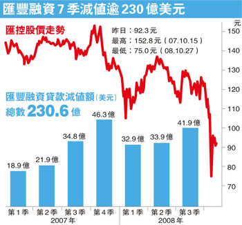 美國樓市持續(xù)下滑,愈來愈多人加入失業(yè)大軍,令匯豐按揭和信用卡貸款壞帳增加,第三季個人消費融資的貸款減值損失,較上季增加7億美元,增至43億美元。