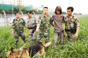 今年5月1日下午3時(shí)30分左右,廣東邊防六支隊(duì)十中隊(duì)警官蘇建飛正在執(zhí)勤,他通過監(jiān)控器嚴(yán)密監(jiān)視著邊防地段上的動靜。突然,蘇建飛透過監(jiān)控屏幕發(fā)現(xiàn)4名男子鬼鬼祟祟的進(jìn)入了延芳路邊防地段,他立即通過對講機(jī)命令附近執(zhí)勤哨兵前往查看情況!罢咀!干什么的?”哨兵邊跑邊喊道。4名男子見邊防官兵追了過來,慌忙竄入邊界緩沖地帶的香蕉林里。此時(shí),香港打鼓嶺警署在接到廣東邊防六支隊(duì)的信息通報(bào)后,也從深圳邊界警方傳輸過來的視頻信息中發(fā)現(xiàn)了4名男子。最終,在深港邊界警方通力合作下,4名涉嫌非法越界男子全部落網(wǎng)。