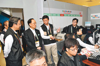 另外,曾蔭權(quán)上周末巡視東亞運(yùn)動(dòng)會(huì)部分比賽場(chǎng)地,了解各項(xiàng)籌備工作并觀看彩排。在灣仔伊利沙伯體育館,特首特別巡視了東道主廣播機(jī)構(gòu)香港電臺(tái)的直播中心,了解賽事電視訊號(hào)的技術(shù)安排。署理廣播處長(zhǎng)梁松泰及助理廣播處長(zhǎng)張文新,向特首重點(diǎn)介紹香港電臺(tái)為東亞運(yùn)提供的廣播技術(shù)支持及投入的資源。