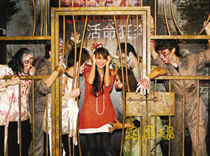 據(jù)了解,整間瘋?cè)嗽汗灿?個(gè)區(qū)域,除了逼真恐怖的蠟像,會(huì)走動(dòng)的“瘋?cè)恕备S時(shí)失驚無(wú)神“彈”出來(lái),加上處處機(jī)關(guān)、暗角位,參觀者在長(zhǎng)約5分鐘的旅程,可謂步步驚心!