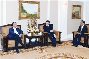 何厚鏵在廈門(mén)與福建省省委書(shū)記盧展工及省長(zhǎng)黃小晶會(huì)晤。(圖片來(lái)源:澳門(mén)日?qǐng)?bào))