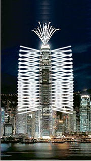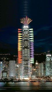 據香港媒體報道,據介紹,12月31日當晚,11時43分維港先上演“幻彩詠香江”,到了07年最后20秒,國金二期外墻便會開始發(fā)放煙火,附近4幢大廈的外墻亦會有液晶體大熒幕,會同步顯示時間,讓市民跟著倒數(shù)。踏入08年第一秒,外墻會發(fā)放“2008”字樣的煙火。緊接的是分半鐘加強版多媒體燈光、煙火、音樂匯演,國金會有8幕特別設計的煙火圖案,令這座維港兩岸最高建筑物更矚目。