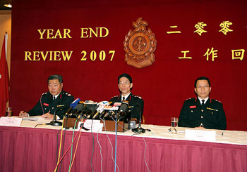 盧振雄29日在消防處工作回顧記者會上表示,2007年的火警召喚總數(shù)共31638宗,按年減少4.9%。94.32%的樓宇火警在規(guī)定召達(dá)時間內(nèi)到場處理,高于承諾指標(biāo)。