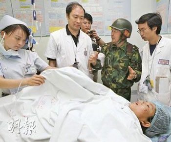 中新網(wǎng)5月22日電 據(jù)香港明報報道,“我吃野草、吃蚯蚓,我告訴自己要活下去,拼命的活下去!口喝了,沒有水,我便喝自己的尿,喝了兩三遍……不知過了多少天,劉大爺來到,他說:‘我是來救你的!’”21日再有一名在廢墟中重傷待援9日9夜的女工獲救,而負(fù)責(zé)救援的,正好是香港醫(yī)管局急癥專科醫(yī)生劉楚釗和護(hù)士劉炳發(fā)。