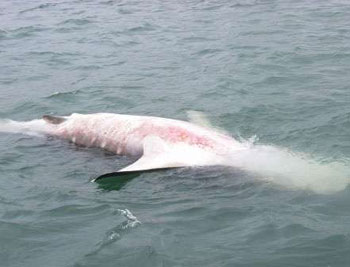 豈料事隔一日,至8日上午9時(shí)許,有釣魚發(fā)燒友租艇由香港仔往南丫島垂釣,開船15分鐘后即在鴨利洲以東海面發(fā)現(xiàn)一條大魚浮尸,而當(dāng)時(shí)已有一艘水警輪在場(chǎng),他相信該條大魚尸體就是日前放生的鯨鯊,事后更將拍攝的相片上載到互聯(lián)網(wǎng),引起網(wǎng)友熱烈討論。