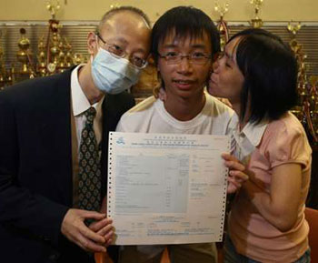 中新網(wǎng)8月5日電 據(jù)香港大公報(bào)報(bào)道,香港英中名校盡攬2008年中學(xué)會(huì)考的15名“十優(yōu)狀元”,九龍?zhí)晾硶撼蔀椤按筅A家”,獨(dú)占4席。最感人的狀元為皇仁書院的吳國(guó)輝,他父親不幸患上血癌,使他深深感受到患病痛苦,因而發(fā)奮讀書,立志行醫(yī)。