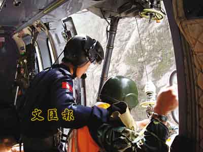 中新網(wǎng)6月2日電 昨天上午10時許,香港飛行服務隊直升機駕駛“超級美洲豹”直升機,在2公里的飛行能見度中,冒著撞山、絆電纜的風險,與解放軍合力從四川綿竹市清平鄉(xiāng)海拔2400多米深山區(qū),成功營救出兩名被困19天的重傷礦工。