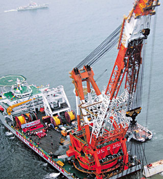 首先,“華天龍”號(hào)能穩(wěn)當(dāng)?shù)跗?000噸重物的巨臂,勾起綁好沉船的鋼索,當(dāng)沉船露出水面,打撈人員即在船上適當(dāng)位置焊上吊耳,以便“華天龍”將沉船扳正,然后移往淺水位置,最后利用潛水泵將沉船積水抽干,令船身保持浮力,方便搜索人員進(jìn)入船艙搜尋失蹤者。