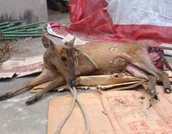 香港漁護署獸醫(yī)陳詩寧作供時說,死去的黃麂懷有身孕,約19公斤重,全身無牙齒印,但有兩處可見的撕裂傷口和胸腔肌肉出血,估計牠是腦和肺部出血致死。