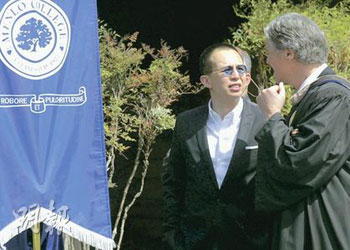 曾在Menlo高中就讀的李澤楷,11日應南灣Menlo College邀請,擔任畢業(yè)禮的主講嘉賓。典禮結(jié)束后,他回答了幾個提問。戴著太陽眼鏡的他說,只會在美國逗留數(shù)天處理業(yè)務,畢業(yè)禮后數(shù)小時便要飛往洛杉磯。至于有關其感情事,如是否已與梁洛施訂婚?李澤楷一概不回應,就連記者問他是否有意發(fā)展娛樂事業(yè)時,李澤楷也只是笑笑說:“我不會答你的!