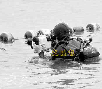 承辦商派出蛙人下海檢查防鯊網(wǎng)。(圖片來源:文匯報)