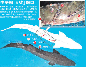 另一方面,海狼在海洋公園已居住近10年,由3吋長養(yǎng)到現(xiàn)在1米多長,從無襲擊其它魚類紀(jì)錄,故相信這次是“意外”,海狼只是與新引入的中華鱘發(fā)生小摩擦或碰撞而導(dǎo)致這反射式行為,而根據(jù)“5號”身上的4處傷口,雖然最長的達(dá)16厘米,但傷口不深,顯示海狼非刻意攻擊,只是尖牙將“5號”咬傷。
