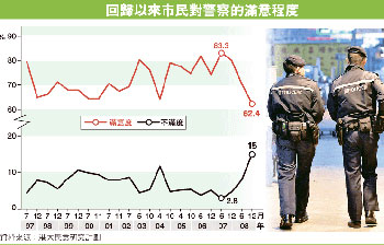 廖也說:“由于市民對(duì)公務(wù)員、公職人員要求高,加上以往警方滿意度都很高,稍有行差踏錯(cuò),影響便會(huì)較大,相信在近期事件影響下,市民要一段時(shí)間才能回復(fù)信心!