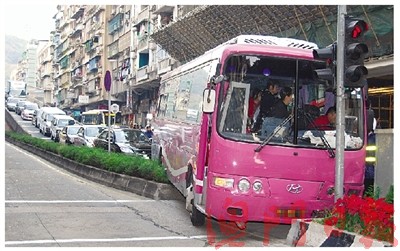 MI94XX號中澳旅行社大巴14日下午接載14名仁愛安老院長者和多名工作人員,到冼星海大馬路澳門回歸賀禮陳列館參觀后,回程返內(nèi)港仁愛安老院。約下午5時,旅游巴經(jīng)松山隧道,由天橋下坡進高士德大馬路時,疑突然剎車失靈,高速狂沖下斜,當時培正對面的交通燈位正亮紅燈,前方有一輛載有一名女乘客的的士在燈前等候。