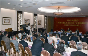 楊崇匯贊揚澳區(qū)全國政協(xié)委員一向關心祖國的統(tǒng)一大業(yè)。很多委員利用自己的威望、影響和廣泛的社會聯系,在反“臺獨”、促統(tǒng)一的工作中發(fā)揮特有作用。