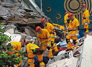 中新網(wǎng)5月16日電 據(jù)香港文匯報(bào)報(bào)道,四川省副省長(zhǎng)李成云15日下午表示,一支由20名消防員和救護(hù)人員組成的香港特區(qū)搜救隊(duì)攜帶大量專業(yè)工具,已于15日上午進(jìn)入重災(zāi)區(qū)綿竹市漢旺鎮(zhèn)展開(kāi)救援,F(xiàn)場(chǎng)消息指至今最少掘出5具尸體,料最少尚有20人被困。