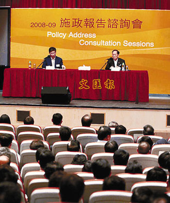 針對(duì)民生問(wèn)題,曾蔭權(quán)強(qiáng)調(diào):“香港競(jìng)爭(zhēng)法、醫(yī)療融資、最低工資立法、廣播政策、生果金檢討等多個(gè)大型民生政策均會(huì)在2008-2009年度,特別是2009年誕生!敝劣谡品矫,他則說(shuō),普選時(shí)間表已經(jīng)定下,2012年的選舉辦法需要深入討論,將在明年開(kāi)展有關(guān)工作。