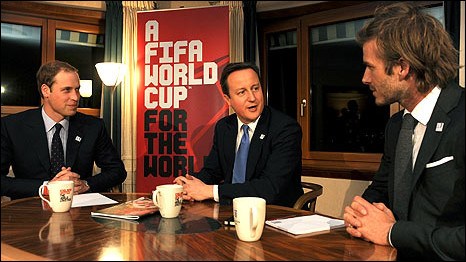 卡梅倫是英格蘭申辦2018世界杯的30人代表團中的一員。另外,威廉王子和前英格蘭男子足球隊長貝克漢姆也在代表團之列。