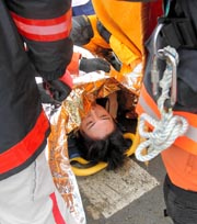 一名在救護車旁等候被救男子的消防人員稱:“距地震發(fā)生已經(jīng)將近5天了。他還活著,真是個奇跡!”