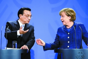 “中德關系不僅對我們雙邊,而且對中歐乃至于對世界都有重要意義!崩羁藦娊榻B說,剛才我與默克爾總理舉行了富有成果的會談,討論和規(guī)劃了未來一個時期中德合作的思路與重點,就深化中德戰(zhàn)略伙伴關系達成重要共識。我們一致同意保持兩國總理年度會晤機制,加強各層次磋商交流,推進經(jīng)貿、農業(yè)、城鎮(zhèn)化、人文等領域合作,密切兩國人民的相互了解和友誼。這些舉措將有力推動兩國關系發(fā)展。