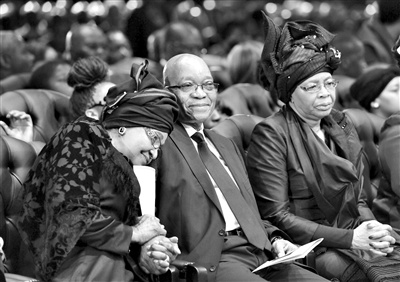 此后,曼德拉的家人代表,他在監(jiān)獄中的獄友,參加葬禮的馬拉維女總統(tǒng)班達(dá),坦桑尼亞總統(tǒng)基奎特,以及南非總統(tǒng)祖馬等先后在葬禮上講話。祖馬還帶頭引領(lǐng)全場(chǎng)唱挽歌送別曼德拉。