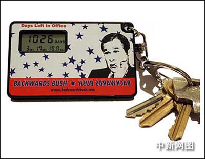 紐約市的文斯·蓬佐在布什連任后不久就開始銷售倒計時鑰匙鏈。他在名為“倒退的布什”(backwards bush)的網(wǎng)站上賣出了12.5萬個鑰匙鏈,他還在網(wǎng)上銷售顯示布什任期剩余時間的座鐘和掛鐘。