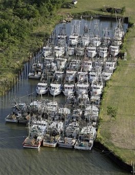 漁船被集中固定在港口中。