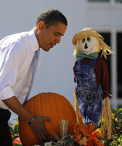10月30日,在美國佛羅里達州的薩拉索塔,選戰(zhàn)中四處奔走的美國民主黨總統(tǒng)候選人奧巴馬忙里偷閑,來到當?shù)氐囊患夷瞎蠄@摘南瓜,享受片刻悠閑。