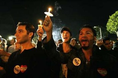 加州數(shù)千同性戀支持者游行抗議同性婚姻禁令(圖)