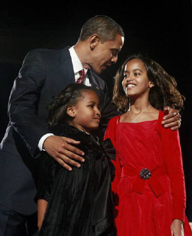 孟漢納是美國(guó)目前最紅的青少年電視節(jié)目,據(jù)透露,制作單位邀請(qǐng)奧巴馬的兩個(gè)女兒、十歲的瑪莉亞和七歲的莎夏,客串一集,有可能是在明年四月,斃騺喓蜕倪沒(méi)有回復(fù)。奧巴馬曾經(jīng)在訪問(wèn)中透露,他的大女兒瑪莉亞很迷孟漢納,不過(guò)奧巴馬夫婦保護(hù)女兒不遺余力,未來(lái)的第一千金,很少在媒體上曝光。