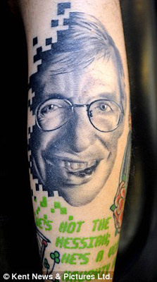 英國(guó)小伙杰克·牛頓由于對(duì)科學(xué),特別是天體物理學(xué)熱愛(ài)到難以自拔的程度,日前他將著名科學(xué)家史蒂芬·霍金的頭像紋在了腿上。